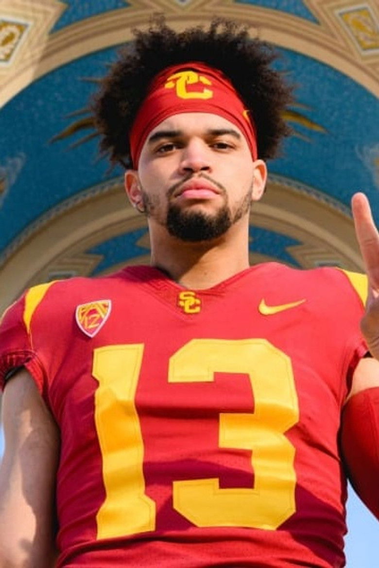 Caleb Sequan Williams (born November 18, 2001) is an American professional football quarterback for the Chicago Bears of the National Football League (NFL). Following one season of college football with the Oklahoma Sooners, he played for the USC Trojans and won the Heisman Trophy in 2022 after setting single-season school records in passing yards and touchdowns. Williams was selected first overall by the Bears in the 2024 NFL draft. Description above from the Wikipedia article Caleb Williams, licensed under CC-BY-SA, full list of contributors on Wikipedia.